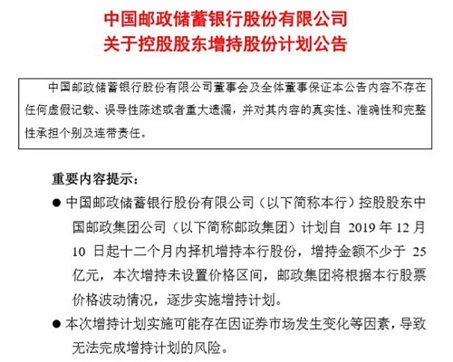 12月8日下午,中國(guó)郵政儲(chǔ)蓄銀行(下稱郵儲(chǔ)銀行)發(fā)布的《首次公開發(fā)行股票(A股)上市公告書》顯示,該行A股股票將于2019年12月10日在上海證券交易所上市,證券簡(jiǎn)稱“郵儲(chǔ)銀行”,證券代碼“601658”。這意味著,近十年來(lái)A股規(guī)模最大的IPO即將完成,同時(shí)也意味著國(guó)有大型商業(yè)銀行“A+H”兩地上市收官在即。 備受市場(chǎng)關(guān)注的是,同日,郵儲(chǔ)銀行還發(fā)布了《關(guān)于控股股東增持股份計(jì)劃公告》。公告稱,控股股東中國(guó)郵政集團(tuán)公司(下稱郵政集團(tuán))計(jì)劃自2019年12月10日起12個(gè)月內(nèi)擇機(jī)增持該行A股股份,增持金額不少于25億元。這體現(xiàn)了控股股東對(duì)郵儲(chǔ)銀行投資價(jià)值的高度認(rèn)可,也將為證券市場(chǎng)的穩(wěn)定運(yùn)行創(chuàng)造良好環(huán)境,彰顯“國(guó)家隊(duì)”擔(dān)當(dāng)。 投行人士分析認(rèn)為,上述公告可謂對(duì)郵儲(chǔ)銀行上市后的股價(jià)表現(xiàn)起到一定的支撐作用。實(shí)際上,郵儲(chǔ)銀行本次A股IPO亮點(diǎn)迭出,打出了一整套“組合拳”護(hù)航上市。根據(jù)上證報(bào)的梳理,累計(jì)有十大利好,有望給投資者吃下 “定心丸”。 利好一:控股股東郵政集團(tuán)自郵儲(chǔ)銀行A股上市起12個(gè)月內(nèi),將增持不少于25億元; 利好二:近十年來(lái)首單引入“綠鞋”機(jī)制,約43億元“綠鞋”資金作為后市表現(xiàn)的有效支撐; 利好三:6家戰(zhàn)略配售基金首次悉數(shù)到場(chǎng)并頂格申配,社保基金組合、央企基金首次齊聚,8家戰(zhàn)略投資者合計(jì)認(rèn)購(gòu)股數(shù)約占“綠鞋”前本次發(fā)行規(guī)模的40%; 利好四:長(zhǎng)線專業(yè)機(jī)構(gòu)投資者獲配量占網(wǎng)下發(fā)行總量的比例高達(dá)87%; 利好五:戰(zhàn)略配售獲配股份鎖定一年,70%的網(wǎng)下配售股份鎖定6個(gè)月; 利好六:聯(lián)席主承銷商A股IPO史上首次聯(lián)袂承諾對(duì)于包銷的股份鎖定至少1個(gè)月或6個(gè)月; 利好七:本次發(fā)行鎖定股份超過(guò)“綠鞋”后發(fā)行規(guī)模的一半; 利好八:現(xiàn)有股東作出股份鎖定承諾,控股股東郵政集團(tuán)持有郵儲(chǔ)銀行64.79%(“綠鞋”前)的股份鎖定三年,螞蟻金服、騰訊、中國(guó)電信、中國(guó)人壽等股東持有股份鎖定一年; 利好九:A股上市后預(yù)計(jì)很快將納入主要指數(shù),最高或約80億元增量資金有望流入; 利好十:郵儲(chǔ)銀行控股股東,郵儲(chǔ)銀行自身、董事、高管都作出了穩(wěn)定股價(jià)的承諾十:郵儲(chǔ)銀行控股股東,郵儲(chǔ)銀行自身、董事、高管都作出了穩(wěn)定股價(jià)的承諾;