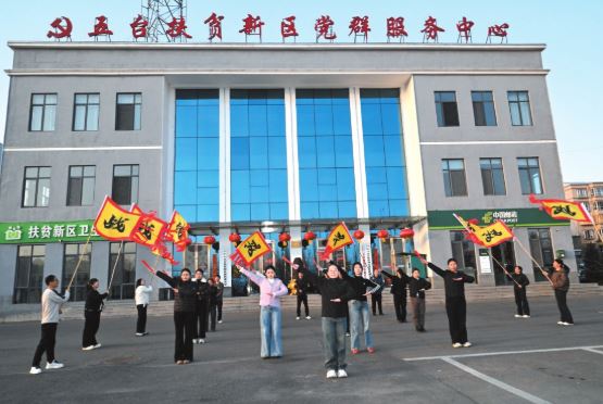 正月初八,走進位于五臺縣東雷鄉(xiāng)的扶貧新區(qū)社區(qū),夕陽余暉灑滿這片占地26萬平方米的集中安置區(qū)。13棟六層居民樓內(nèi)年味濃郁,街道上紅燈籠高懸,家家戶戶門前張貼著紅彤彤的對聯(lián)。辦公樓前的廣場上鼓樂悠揚、彩旗飄飄,由社區(qū)牽頭、居民自發(fā)參與的秧歌隊正加緊排練,準備參加該縣元宵節(jié)文藝匯演。圍觀居民的歡聲笑語與參與者的歡快舞姿,勾勒出一幅溫馨熱鬧的新春畫卷。
