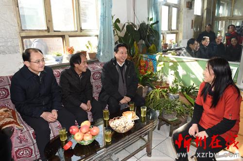 在靜樂縣縣城西林路慰問困難職工李二紅(馮曉磊 攝)