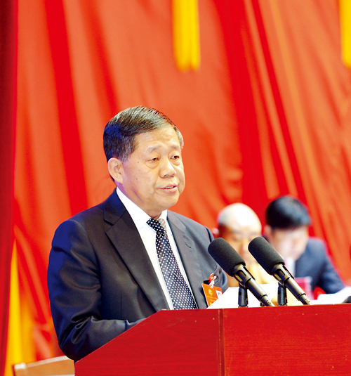 秦新年代表市三屆人大常委會(huì)作工作報(bào)告。宮愛文 攝