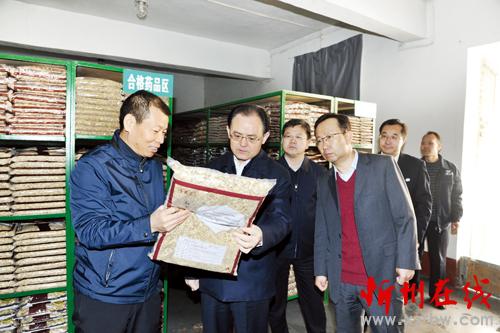 圖為市委書記李俊明在市藥業(yè)集團(tuán)調(diào)研。本報記者 劉紀(jì)森 攝