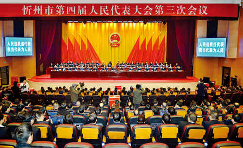 12月6日,市四屆人大三次會議在忻閉幕。圖為大會會場。 范濤 攝