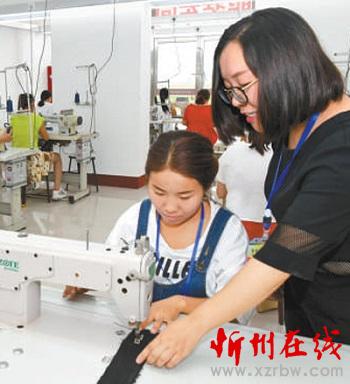河曲縣開展全民技能提升培訓(xùn),老師指導(dǎo)學(xué)員加工服裝。鄔耿杰攝