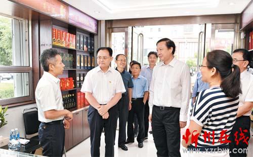 圖為國家煙草專賣局黨組書記、局長張建民(右三)在我市調研卷煙零售市場。本報記者 劉紀森 攝