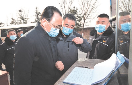 圖為2月20日,省人大常委會副主任、市委書記、市疫情防控工作領導小組組長李俊明在禹王煤炭氣化公司督導調研企業(yè)疫情防控、復工復產和重點項目建設情況。本報記者 宮愛文 攝