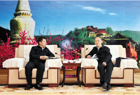 市委書記鄭連生會見山西文旅集團(tuán)董事長王文保。 本報(bào)記者 劉紀(jì)森 攝