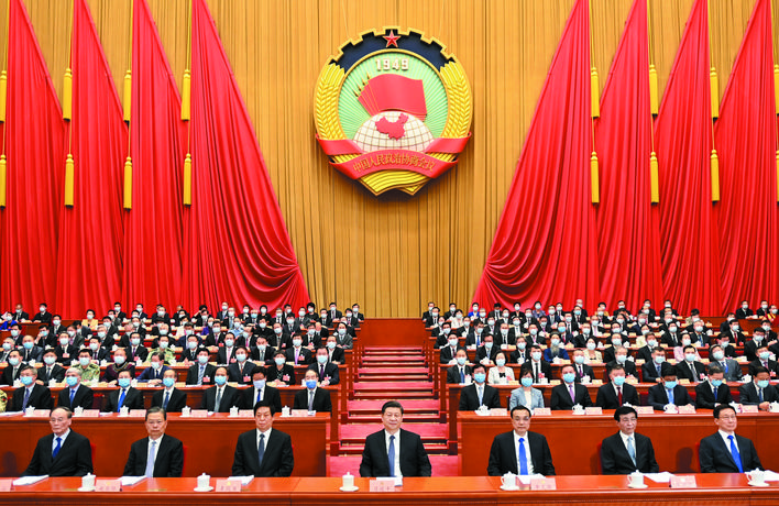5月21日,中國人民政治協(xié)商會議第十三屆全國委員會第三次會議在北京人民大會堂開幕。這是習(xí)近平、李克強(qiáng)、栗戰(zhàn)書、王滬寧、趙樂際、韓正、王岐山在主席臺就座。 新華社記者 李學(xué)仁 攝