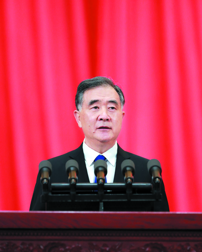 汪洋代表政協(xié)第十三屆全國委員會常務(wù)委員會,向大會報(bào)告工作。