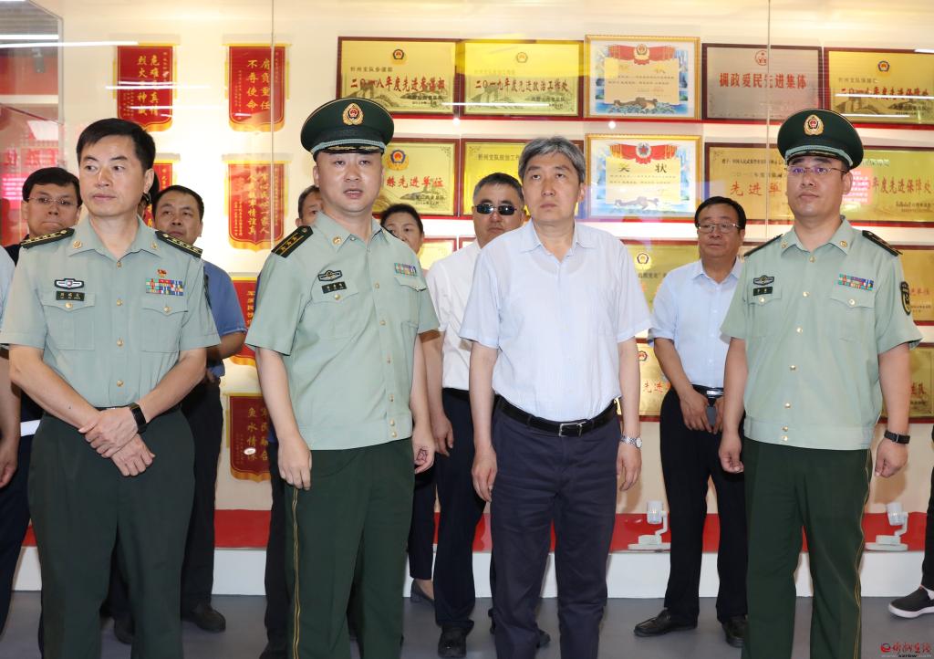 在武警忻州支隊,朱曉東參觀支隊史展覽館,詳細了解支隊歷史沿革和發(fā)展情況。他指出,武警支隊是一支作風優(yōu)良、能吃苦能戰(zhàn)斗能奉獻的隊伍,感謝大家在聚焦備戰(zhàn)打仗、深化拓展軍事斗爭準備的同時,積極參與和支持忻州經(jīng)濟社會發(fā)展,特別是在防火滅火、應急救援、搶險救災中,官兵們第一時間響應,不畏艱險、沖鋒在前,全力幫助處置險情、整治環(huán)境,用實際行動展現(xiàn)了人民子弟兵的本色擔當。希望廣大官兵繼續(xù)加強訓練,時刻準備發(fā)揮職能,在保障全市安全穩(wěn)定方面作出更大貢獻,在新時代新征程上再立新功。忻州將堅持以習近平新時代中國特色社會主義思想為指導,堅定不移支持國防和軍隊現(xiàn)代化建設,扎實推進軍民融合發(fā)展,堅定不移做好擁軍優(yōu)屬工作,不斷完善退役軍人服務保障體系,共同譜寫軍政軍民團結新篇章。