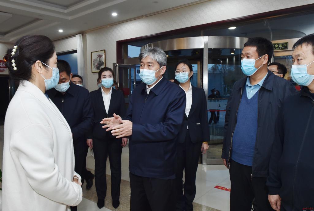 朱曉東一行先后來到忻州城區(qū)七一路和頓村、奇村等地酒店隔離點(diǎn),每到一處,朱曉東都通過實(shí)地察看、聽取匯報(bào)、交流詢問等方式,詳細(xì)了解隔離場所管理運(yùn)行、通道設(shè)置、工作人員配備、值班值守、環(huán)境消殺、物資儲備等情況,并就在督查中發(fā)現(xiàn)的問題現(xiàn)場提出整改意見。調(diào)研中,朱曉東還向奮戰(zhàn)在一線的醫(yī)護(hù)人員、后勤保障人員表示慰問,叮囑他們既要保障好隔離人員的正常生活,也要加強(qiáng)自我防護(hù),確保各項(xiàng)工作流程形成閉環(huán),堅(jiān)決杜絕出現(xiàn)交叉感染。