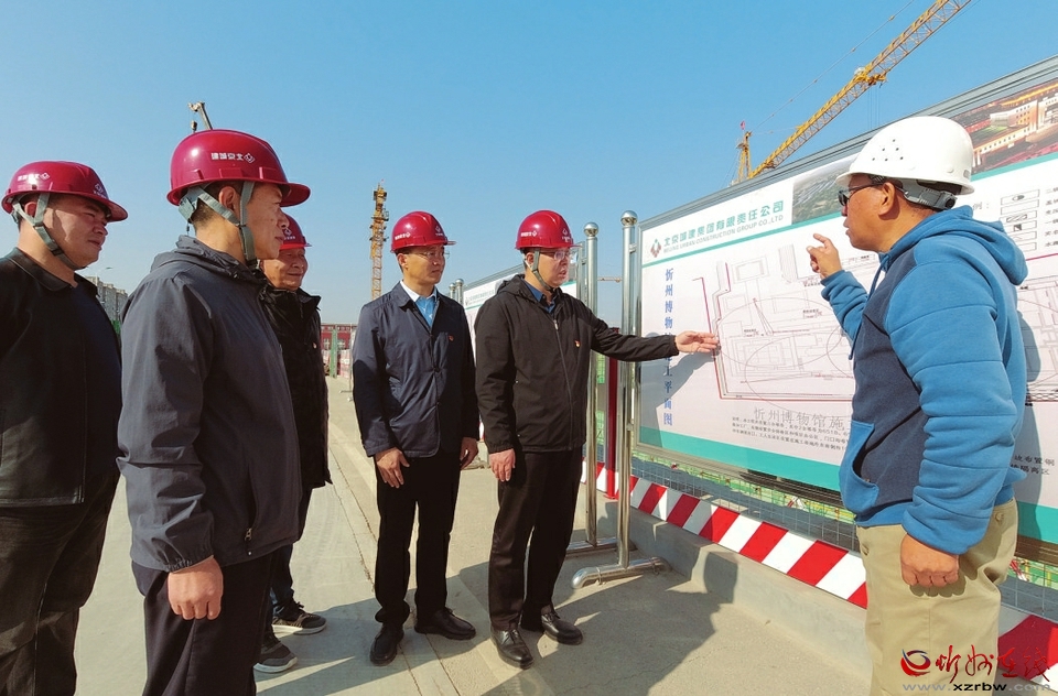 十多分鐘后,一行人來到忻州長城博物館(園)項目現(xiàn)場。一下車,沒有過多的寒暄,楊軍他們開始向項目技術(shù)負責人侯月利了解項目情況?!绊椖楷F(xiàn)在進展情況如何?”“室內(nèi)展廳已經(jīng)封頂,現(xiàn)在正在完成主樓工程。”“一定要確保完成12月30日主體封頂?shù)哪繕恕⒁馐┕ぐ踩?,做好疫情防控工作?!?/p>