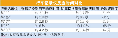 此次測(cè)試,車天下君準(zhǔn)備一個(gè)“黑盒子”,里面放置一個(gè)屏幕常亮的智能手機(jī)。在“黑盒子”外面,放置另外一個(gè)屏幕常亮的智能手機(jī)。切換時(shí)間控制在0.3秒之內(nèi),分為“明到暗”和“暗到明”兩個(gè)環(huán)節(jié),記錄行車記錄儀場(chǎng)景切換時(shí)的響應(yīng)時(shí)間。由測(cè)試結(jié)果一覽表可以看到,參與測(cè)試5個(gè)型號(hào)的行車記錄儀的響應(yīng)時(shí)間都不盡相同:短則1秒,長(zhǎng)則6秒。車天下君歸納如下,質(zhì)量合格的行車記錄儀從昏暗切換到明亮環(huán)境的響應(yīng)時(shí)間應(yīng)在3~4秒之間,從明亮切換到昏暗環(huán)境當(dāng)中的響應(yīng)時(shí)間應(yīng)該在1~2秒之內(nèi)。