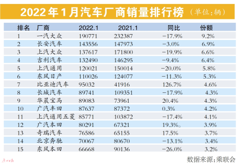 原標(biāo)題:乘聯(lián)會(huì):1月國(guó)內(nèi)狹義乘用車銷量同比下降4.4%,新能源車零售量同比增132%