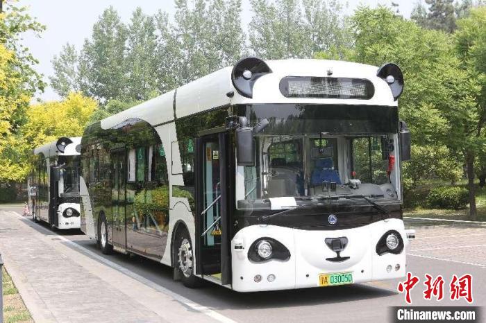 “熊貓智能公交車(chē)”在中新天津生態(tài)城上路運(yùn)行。 深蘭科技供圖