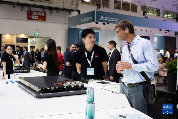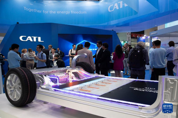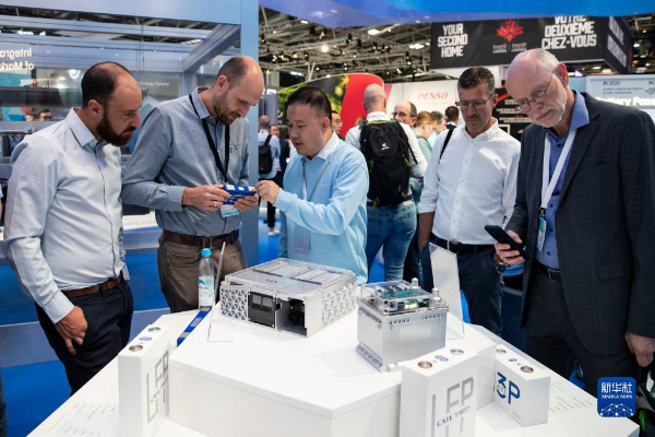 9月5日,人們?cè)诘聡?guó)慕尼黑國(guó)際車展的寧德時(shí)代展區(qū)咨詢洽談。