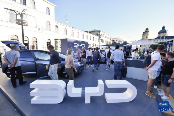 9月5日,人們?cè)诘聡?guó)慕尼黑國(guó)際車展的城市公共展示區(qū)參觀比亞迪汽車。