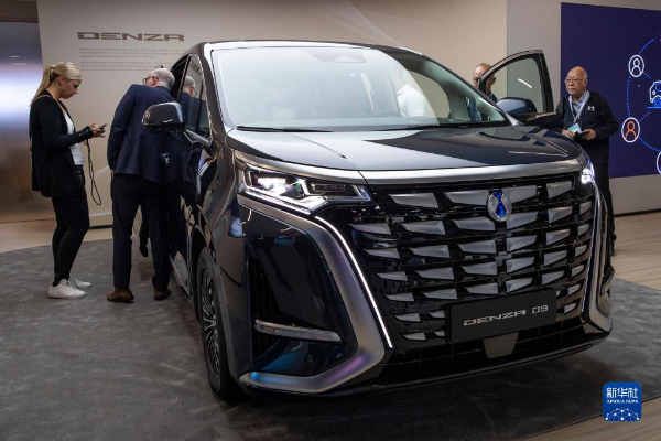9月4日,在德國(guó)慕尼黑國(guó)際車展媒體預(yù)展上,人們?cè)诒葋喌掀放瓢l(fā)布會(huì)現(xiàn)場(chǎng)體驗(yàn)騰勢(shì)D9汽車。
