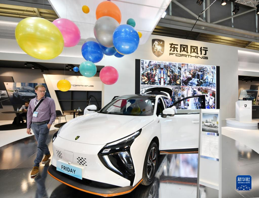 9月6日,一名男子在德國(guó)慕尼黑國(guó)際車展的東風(fēng)風(fēng)行展區(qū)參觀。