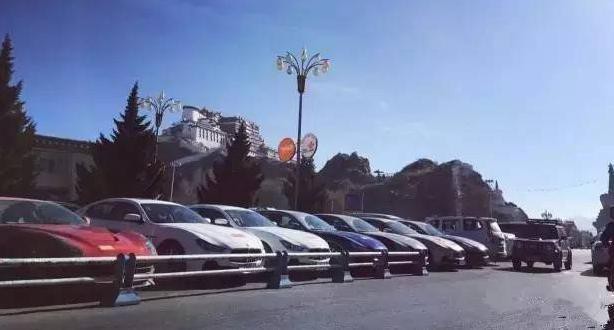 從照片中的豪車進藏小分隊正臉中可以看到奔馳、保時捷、法拉利赫然出現(xiàn)在了征服西藏的小隊伍中。