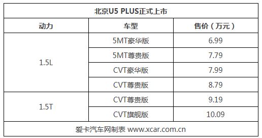 9月23日,北京U5 PLUS正式上市,售價區(qū)間為6.99-10.09萬元。北京U5 PLUS是北京U5的中期改款車型,新車在名字后面加了一個PLUS后綴。北京U5 PLUS配備了最新的北京汽車LOGO,外觀設(shè)計更加年輕化、內(nèi)飾科技感更足。詳細(xì)售價請見下表:
