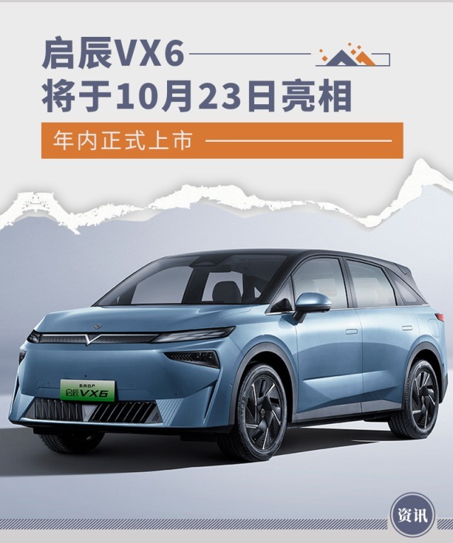 網通社資訊 啟辰VX6將于10月23日亮相,有望于年內正式上市。新車基于啟辰VeConcept概念車打而來的量產車型,定位“家用純電SUV”。