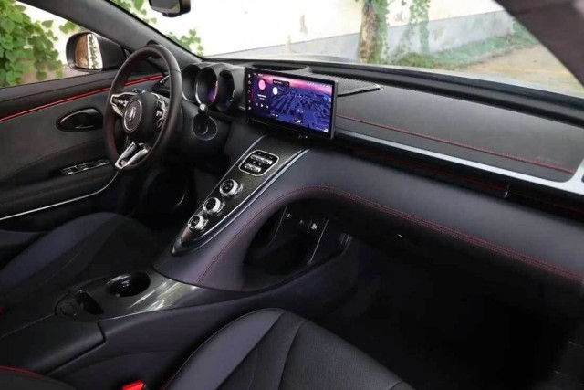 新車的內(nèi)飾通過大面積的黑色來與外觀相呼應,并且通過紅色的縫線進行點綴,進一步提升視覺效果。三圓形的儀表盤同樣有著較強的復古風,中間位置一塊懸浮式的中控大屏則將實用拉滿。