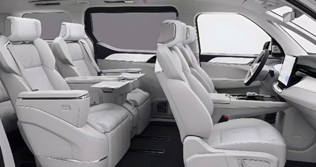 新車內(nèi)部依舊采用較為簡約的設(shè)計風(fēng)格,并配備大尺寸懸浮式中控屏幕。與此同時,沃爾沃EM90的第二排采用支持多項電動調(diào)節(jié)且?guī)в型韧泻托∽腊宓莫毩⒑娇兆?。另外,該車配備包含座椅頭枕內(nèi)置揚(yáng)聲器在內(nèi)的共21揚(yáng)聲器寶華韋健音響系統(tǒng),總功率達(dá)到2460W,并且還標(biāo)配沃爾沃汽車獨有的空氣凈化技術(shù),其配備高效空調(diào)濾芯和主動式空氣凈化技術(shù),可清除高達(dá)95%的PM2.5顆粒物。