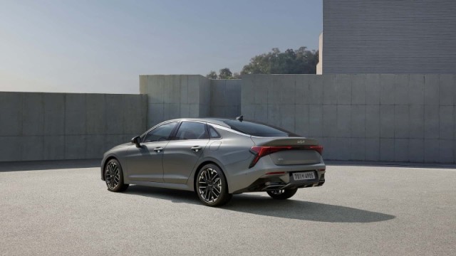 新車側(cè)面造型較為流暢,略微向下傾斜的車頂線條一直延伸至尾部,搭配鍍鉻飾條進(jìn)行點(diǎn)綴時(shí)尚感較強(qiáng)。與此同時(shí),新款K5還配備全新的大尺寸多輻式輪圈。車尾部分,經(jīng)過重新設(shè)計(jì)的貫穿式尾燈組點(diǎn)亮后辨識(shí)度較強(qiáng),略微上翹的鴨尾式擾流板與底部鍍鉻排氣則使其車尾視覺層次感、運(yùn)動(dòng)感十足。