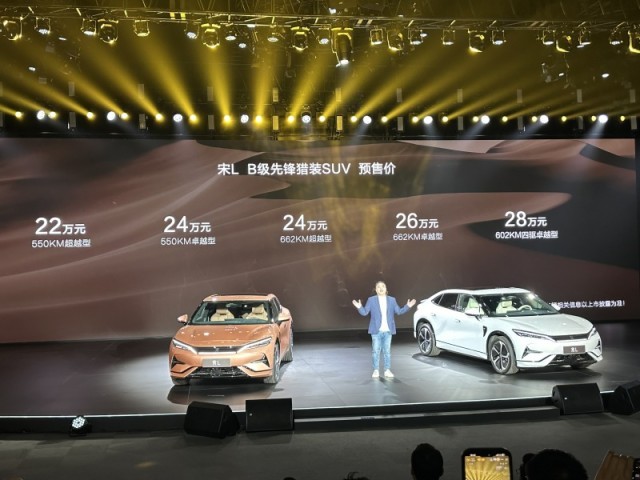 網(wǎng)通社快訊 10月31日晚,比亞迪全新宋L正式開啟預(yù)售,共推出5款車型,預(yù)售價區(qū)間22萬-28萬元。新車定位B級獵裝SUV,基于e平臺3.0打造,采用王朝家族最新設(shè)計語言,配備無框式車門及可升降車尾擾流板組件,并搭載CTB電池車身一體化技術(shù),智能電四驅(qū)、云輦C等技術(shù)。預(yù)售期間,全新宋L還為下訂用戶提供了多重訂購大禮。