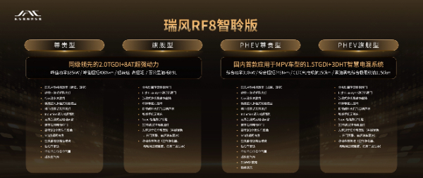 本次廣州車展,江淮瑞風(fēng)現(xiàn)場首發(fā)瑞風(fēng)RF8智聆版,涵蓋燃油與PHEV插混四款車型。PHEV旗艦型,預(yù)售價(jià)格為23.99萬;PHEV尊貴型,預(yù)售價(jià)格21.99萬;燃油旗艦型,預(yù)售價(jià)格18.99萬;燃油尊貴型,預(yù)售價(jià)格16.99萬。