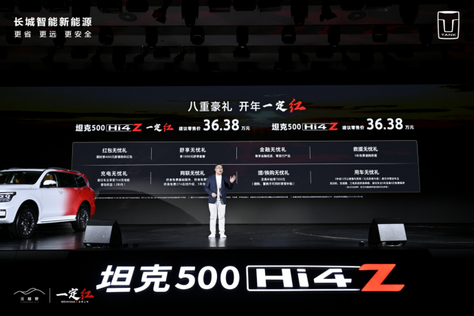 央廣網(wǎng)北京1月2日消息(記者 姜鵬)2025年1月1日,坦克500 Hi4-Z在保定·長城汽車技術(shù)中心上市,售價36.38萬元,坦克500 Hi4-Z一定紅同步發(fā)售。