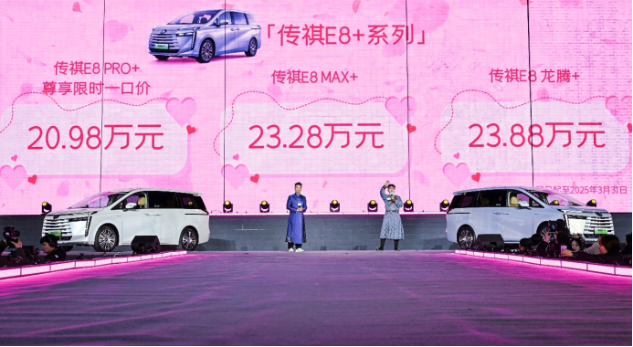 央廣網(wǎng)北京2月15日消息(記者 姜鵬)2月14日,廣汽傳祺E8+在西安舉辦E8車(chē)主之夜暨E8 PRO+上市發(fā)布會(huì),官方指導(dǎo)價(jià)21.68萬(wàn)元,3月31日前購(gòu)車(chē)的用戶可以享受“尊享限時(shí)一口價(jià)”政策,價(jià)格為20.98萬(wàn)元。