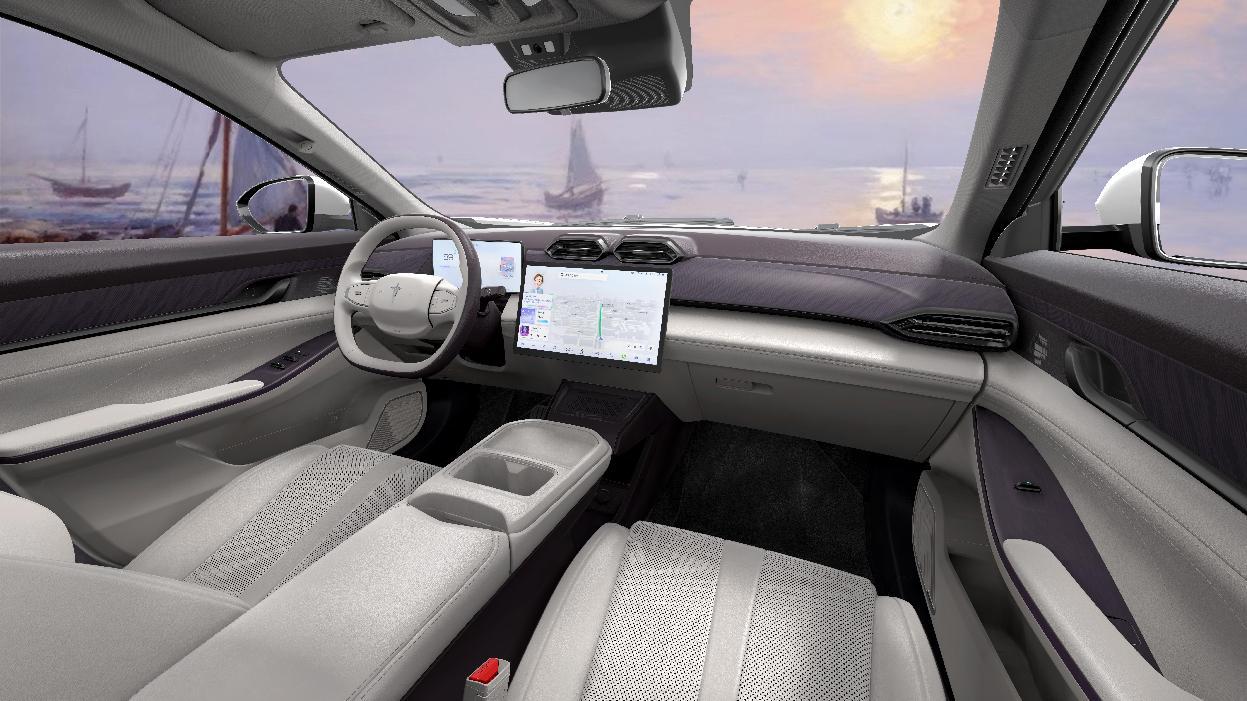 示界06以輕法式美學(xué)為設(shè)計基調(diào)。外觀采用鋒銳自由流線造型,琴弓弦月尾燈靈感源自小提琴弓造型,通過曲面轉(zhuǎn)折與立體光效,勾勒出如交響樂章般的光影韻律。車內(nèi)則以日出印象為靈感,營造溫暖、松弛、充滿生活儀式感的視覺體驗。標(biāo)配高通驍龍8155車規(guī)級芯片、電動可開啟全景天窗、主駕座椅加熱通風(fēng)與記憶功能,擁有同級領(lǐng)先的NVH靜音水平,85%超軟PVC軟觸包覆,采用高溫粒子雙重烘烤工藝,TVOC釋放量優(yōu)于國標(biāo),全方位護航駕乘健康,滿足每一位駕乘者的舒適體驗。