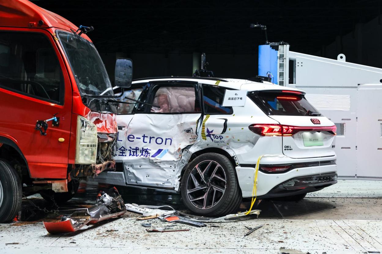 一汽奧迪Q6L e-tron碰撞前處于貨車與剛性柱體之間