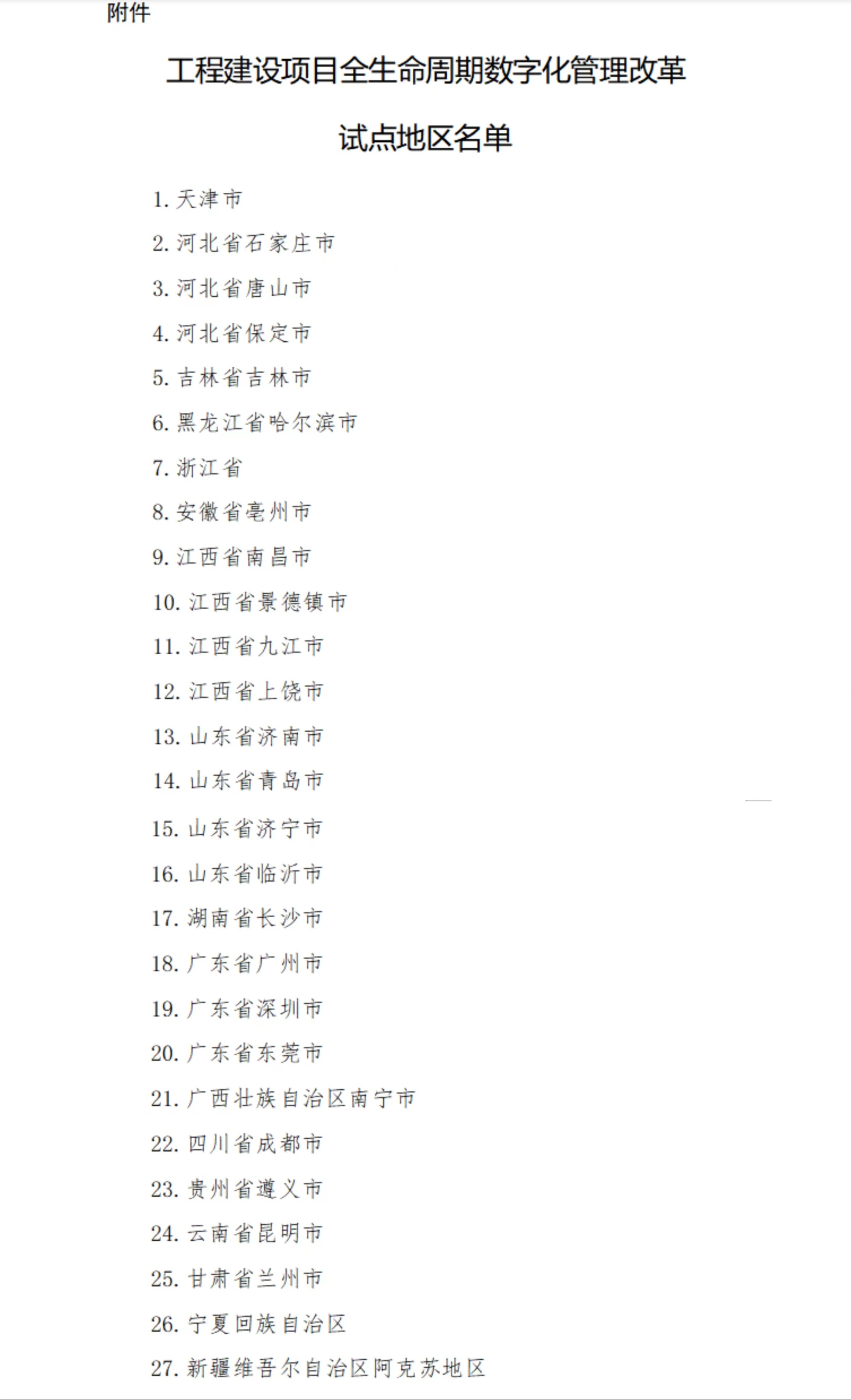 (工程建設項目全生命周期數(shù)字化管理改革試點名單,圖源:住房和城鄉(xiāng)建設部網(wǎng)站,央廣網(wǎng)發(fā))