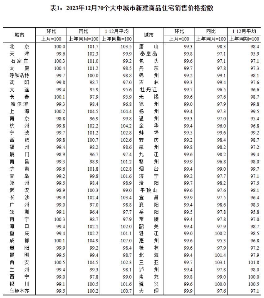 中新網(wǎng)1月17日電 1月17日,國家統(tǒng)計(jì)局公布的數(shù)據(jù)顯示,2023年12月份,70個(gè)大中城市中,各線城市商品住宅銷售價(jià)格環(huán)比下降、同比有漲有降。