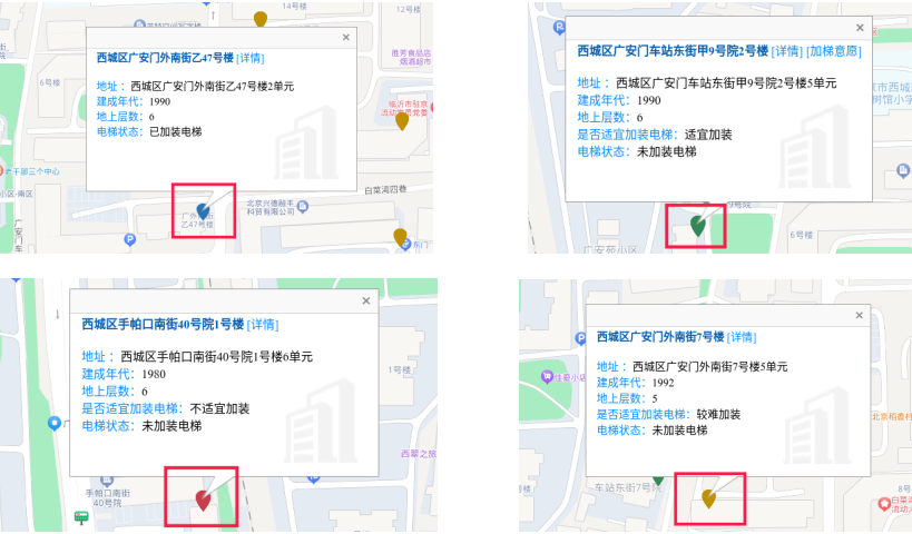點擊地圖即可查看樓棟加梯的相關(guān)信息