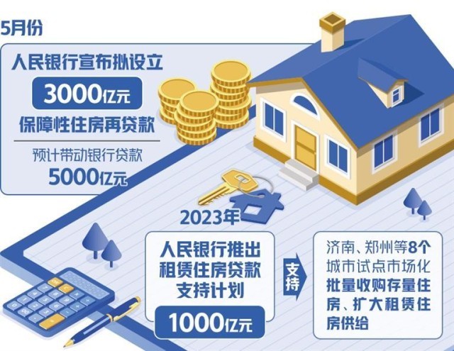 5月,人民銀行宣布擬設(shè)立3000億元保障性住房再貸款,按照“政府主導(dǎo)、市場(chǎng)化運(yùn)作”的思路,由中國(guó)人民銀行提供低成本再貸款資金,激勵(lì)21家全國(guó)性銀行機(jī)構(gòu)按照市場(chǎng)化、法治化原則,支持地方國(guó)有企業(yè)以合理價(jià)格收購(gòu)已建成存量商品房,用作配售型或配租型保障性住房,預(yù)計(jì)帶動(dòng)銀行貸款5000億元。