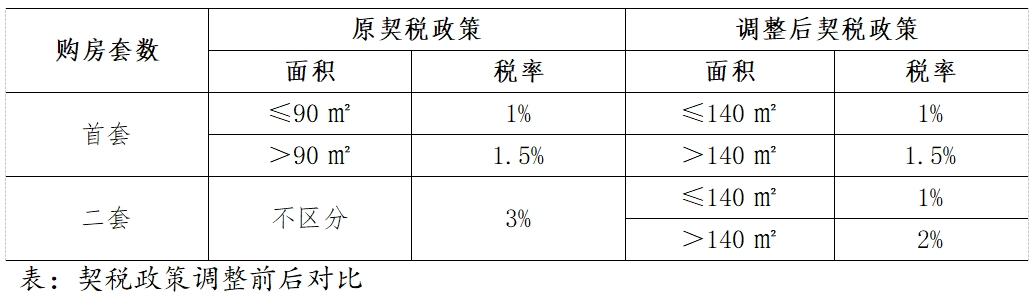 契稅方面,對個人購買家庭唯一住房(家庭成員范圍包括購房人、配偶以及未成年子女,下同),面積為140平方米及以下的,減按1%的稅率征收契稅;面積為140平方米以上的,減按1.5%的稅率征收契稅。對個人購買家庭第二套住房,面積為140平方米及以下的,減按1%的稅率征收契稅;面積為140平方米以上的,減按2%的稅率征收契稅。
