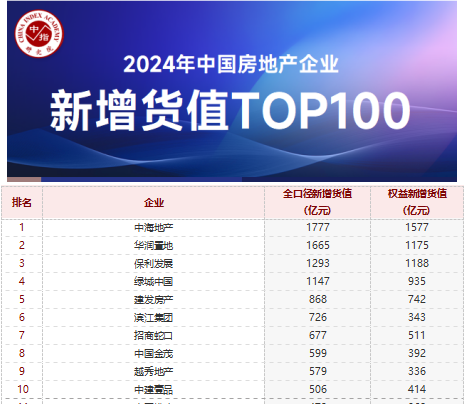 綜合多家機構(gòu)統(tǒng)計,從新增貨值來看,中海地產(chǎn)、華潤置地和保利發(fā)展位列前三。2024年,中海地產(chǎn)以1777億元新增貨值占據(jù)榜單第一,華潤置地、保利發(fā)展分別以1665億元、1293億元,位列第二、第三名。