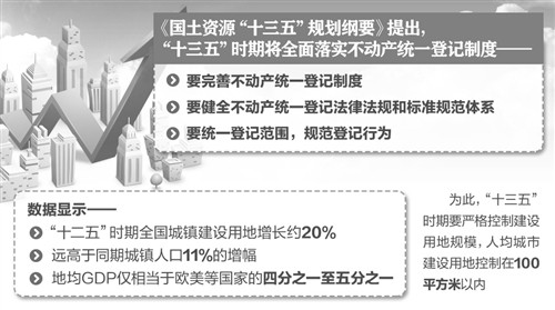 國土資源部今天公布的《國土資源“十三五”規(guī)劃綱要》提出,“十三五”時(shí)期將全面落實(shí)不動(dòng)產(chǎn)統(tǒng)一登記制度。