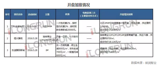 開盤加推情況 2016年5月第四周(5.23—5.29),本周有三個項目開盤、加推。