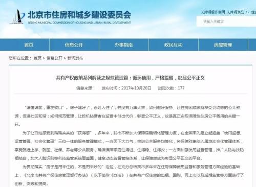 以往的北京市產權型保障房和政策房,如經濟適用房、限價商品房、自住型商品房,在滿足一定條件后是可以轉換為完全商品住房的。而此次《辦法》中,充分考慮北京市人口資源環(huán)境壓力和當前階段共有產權住房供需緊張的情況,在充分聽取各界專家意見基礎上,對共有產權住房再上市產權性質進行了收緊,以“封閉管理、循環(huán)使用”為原則,明確共有產權住房的“共有產權”性質再上市后也不能變更,真正實現“封閉管理、循環(huán)使用”,以滿足更多無房家庭住房剛需。