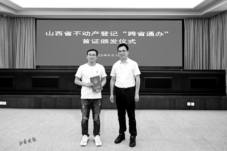 9月15日,山西省不動(dòng)產(chǎn)登記“跨省通辦”啟動(dòng)暨晉津首證頒發(fā)儀式舉行,山西省自然資源廳和天津市規(guī)劃和自然資源局簽訂《晉津不動(dòng)產(chǎn)登記“跨省通辦”合作框架協(xié)議書》,并發(fā)出首本“跨省通辦”不動(dòng)產(chǎn)權(quán)證書。此舉標(biāo)志著晉津兩地不動(dòng)產(chǎn)登記“跨省通辦”正式開啟,兩地的企業(yè)、群眾在本地即可通過(guò)“跨省通辦”窗口辦理不動(dòng)產(chǎn)登記業(yè)務(wù)。