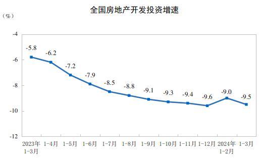 1—3月份,全國房地產(chǎn)開發(fā)投資22082億元,同比下降9.5%(按可比口徑計算,詳見附注6);其中,住宅投資16585億元,下降10.5%。