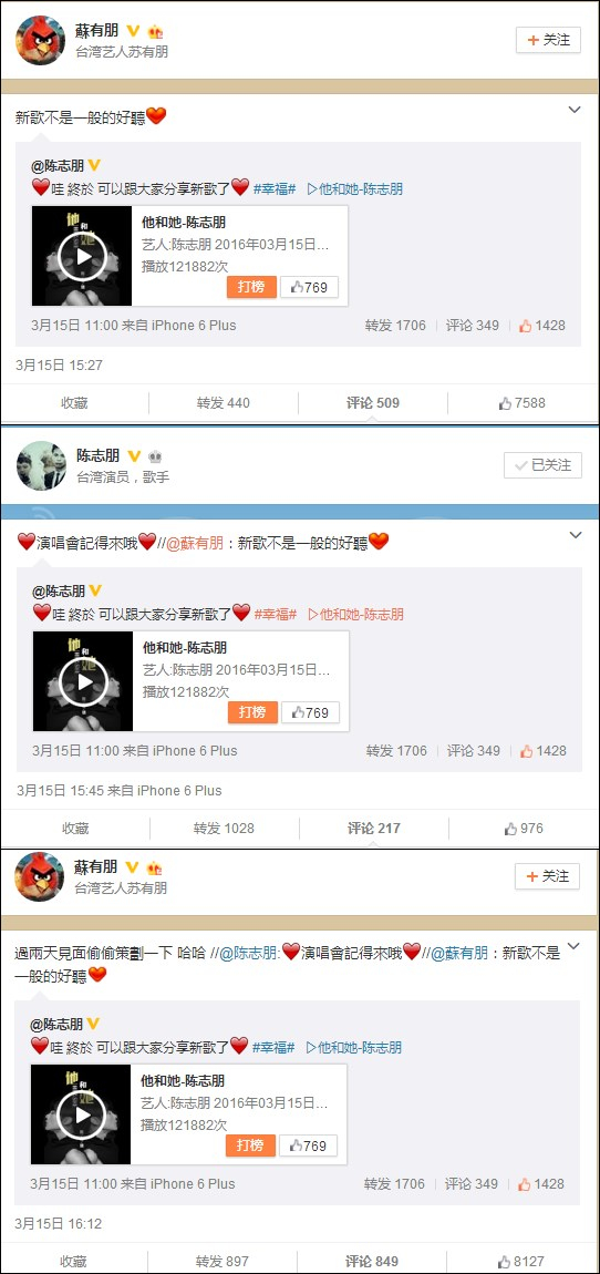 | 陳志朋蘇有朋微博甜蜜互動 |