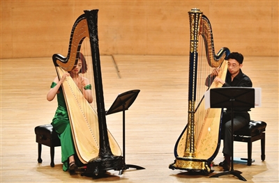 ?7月28日,“真愛(ài)永恒”海豎琴二重奏音樂(lè)會(huì)在天津大劇院音樂(lè)廳上演。