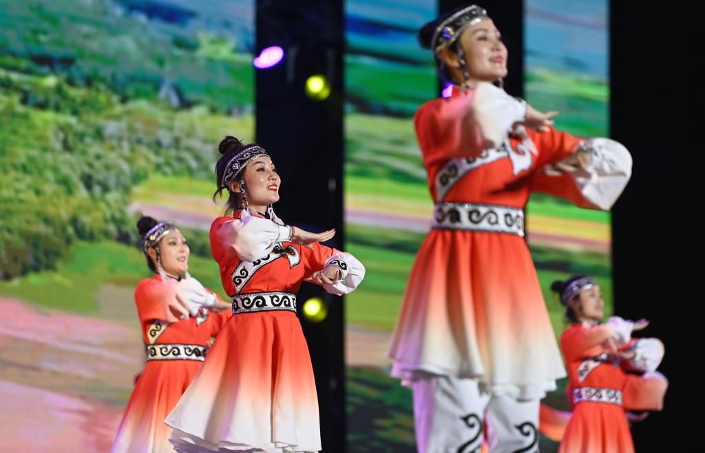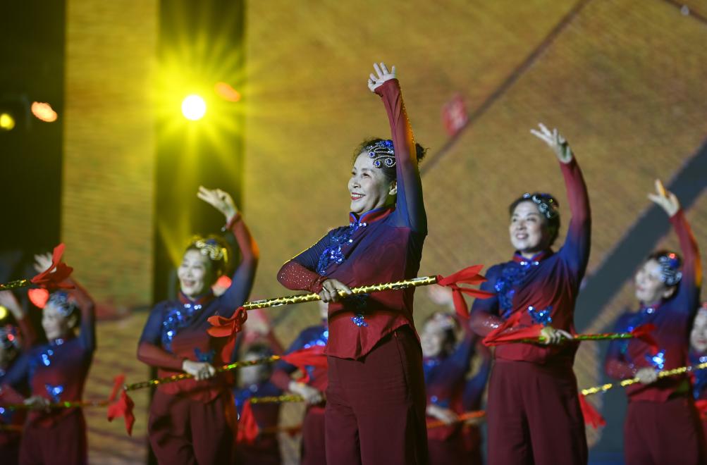 9月10日,參加展演活動(dòng)的廣場(chǎng)舞團(tuán)隊(duì)在表演。新華社記者 趙子碩 攝