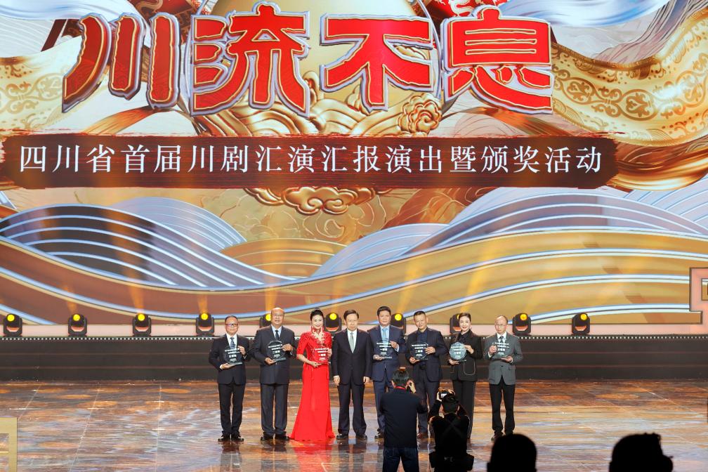 當(dāng)日,“川流不息”四川省首屆川劇匯演匯報演出暨頒獎活動在成都城市音樂廳舉行,集中展示川劇匯演成果,藝術(shù)呈現(xiàn)川劇藝術(shù)精粹,為優(yōu)秀劇目獎、特別貢獻(xiàn)獎、年度英才獎、組織工作獎頒獎。