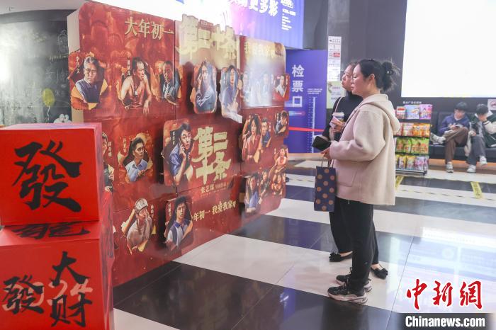 圖為江西贛州一電影院擺放的春節(jié)檔相關(guān)電影宣傳物料吸引民眾觀看。劉力鑫 攝